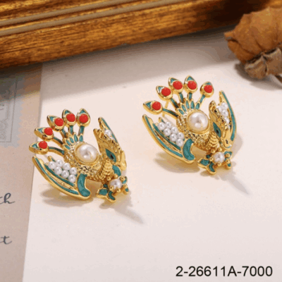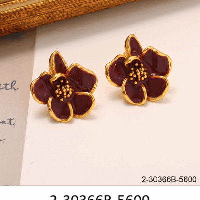 Enamel painted palace feng shui drip hollow carved flower style earrings