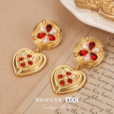 Natural pearl flower earrings, heart-shaped earrings, high-end personalized
