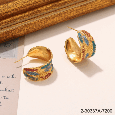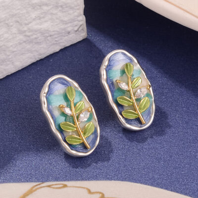 Pearl zircon heart-shaped circular earrings oil painting series French retro Baroque