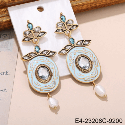 Pearl Flower Vintage Enamel Oil Drop French Palace Earrings