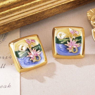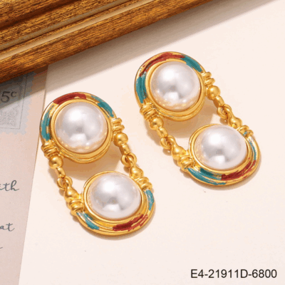 Natural pearl flower earrings oil painting series earrings