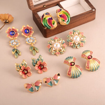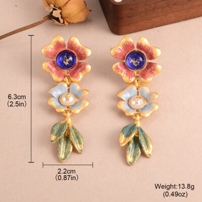 Pearl Flower Vintage Enamel Oil Drop French Palace Earrings