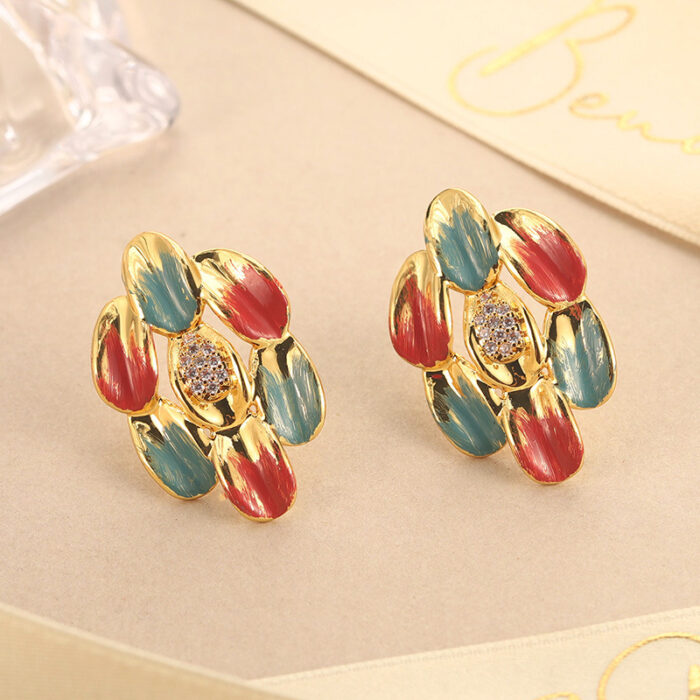 Pearl Flower Vintage Enamel Oil Drop French Palace Earrings
