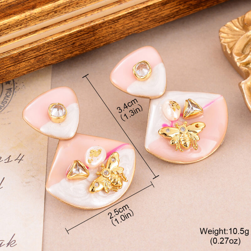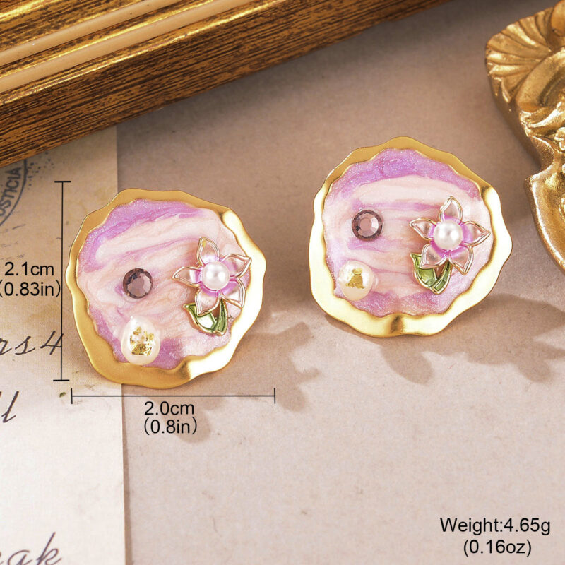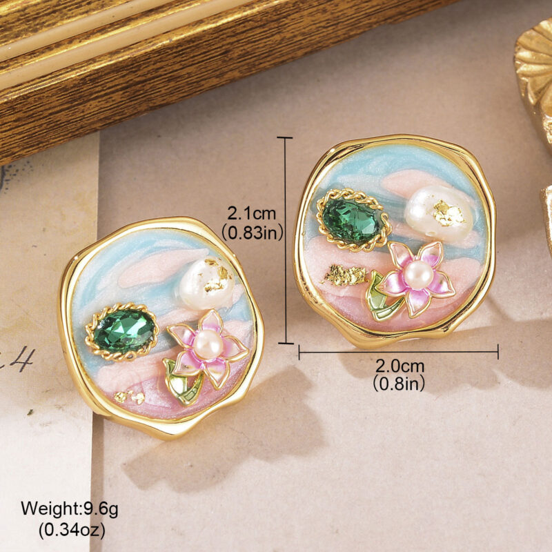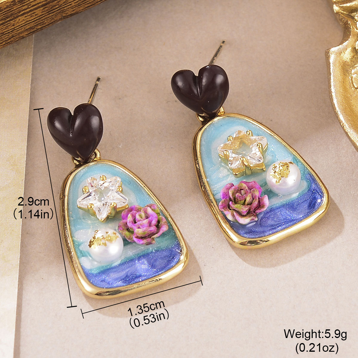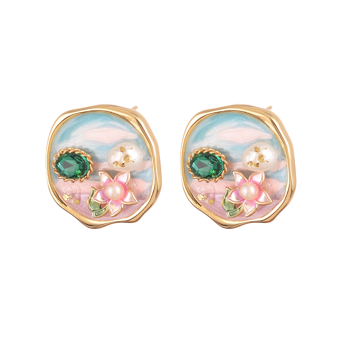 Enamel painted palace feng shui drip hollow carved flower style earrings
