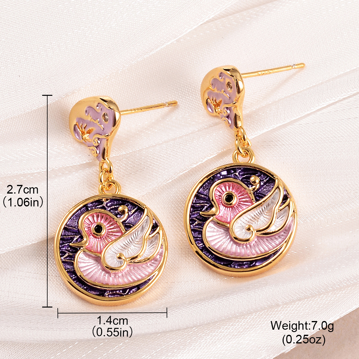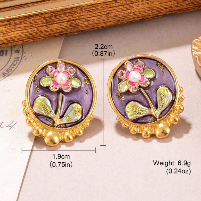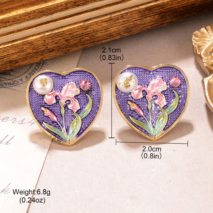 Pearl zircon heart-shaped circular earrings oil painting series French retro Baroque