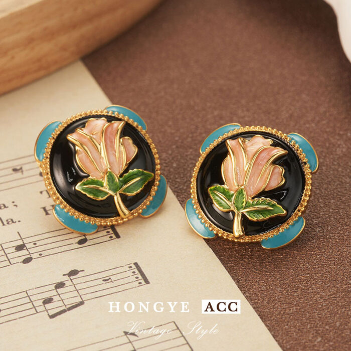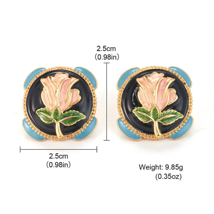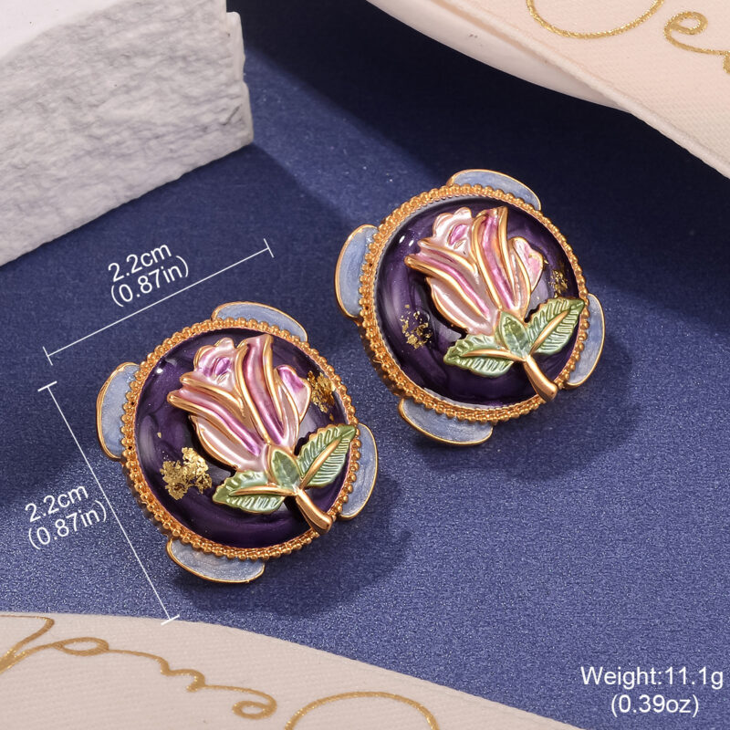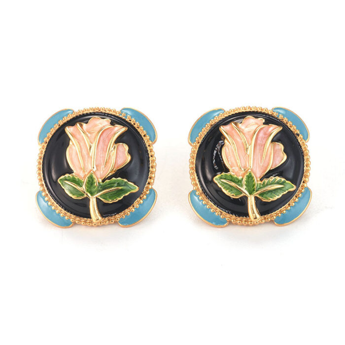Enamel painted palace feng shui drip hollow carved flower style earrings
